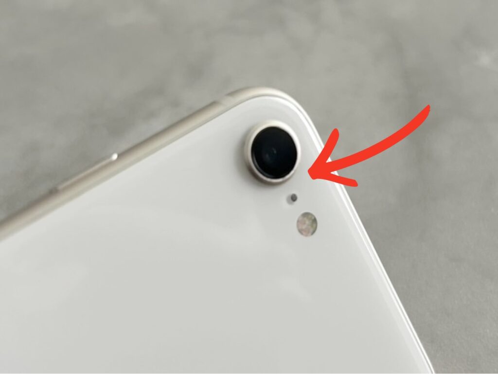 あとは、カメラ周り。ここもスマホケースでは隠せない部分なので多少の傷がついています。